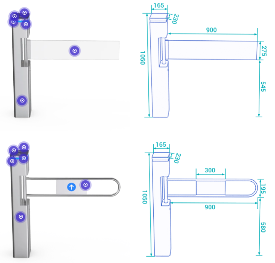 Chức năng chống kéo lê, cổng xoay sẽ tự động khóa nếu có người muốn đột nhập mà không quẹt thẻ RFID (tùy chọn).