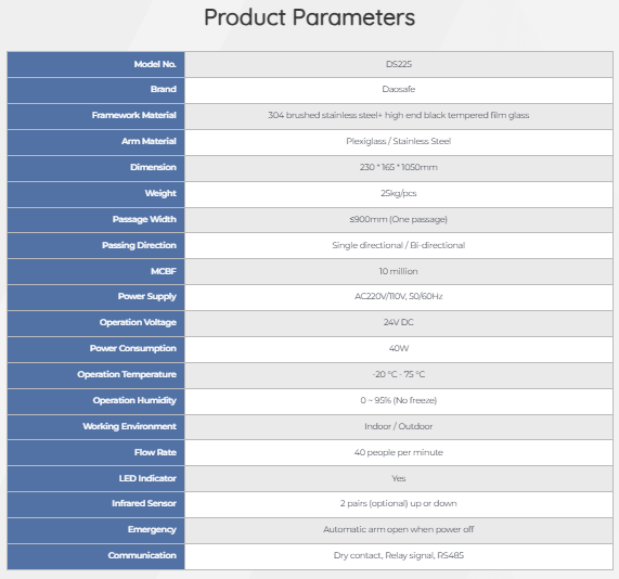 Model SV225 là loại cổng xoay Nebula đơn giản, một cổng có thể hỗ trợ tay đòn 900mm cho lối đi rộng, xe lăn và người đi bộ mang theo hành lý lớn cũng có thể đi qua. Cổng xoay Nebula SV225 đạt chuẩn IP65, chống nước, không sợ nước hay mưa. Đây là giải pháp kiểm soát ra vào mang tính nghệ thuật cao và tính thẩm mỹ cao.