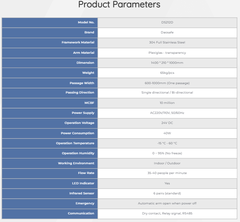 Chức năng tự động reset: tay đòn sẽ tự động khóa trong vòng 5 giây (có thể cài đặt) nếu hành khách chậm trễ trong việc vào.