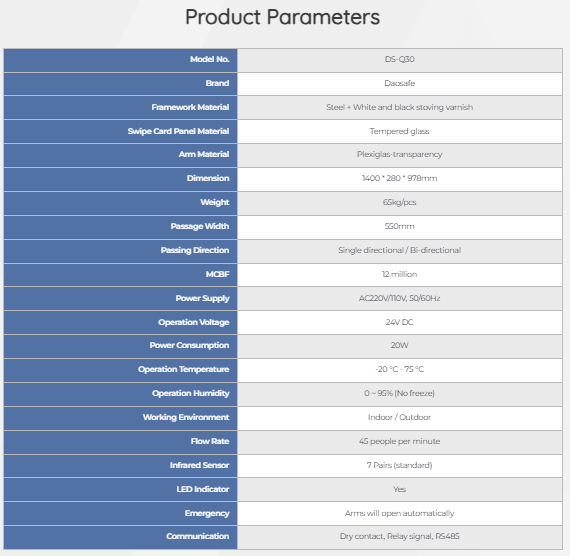 Model SV-Q30 có thể tích hợp với bất kỳ hệ thống kiểm soát truy cập thứ 3 nào, như thẻ, mã QR/mã vạch, sinh trắc học, nút bấm, điều khiển từ xa, vân tay, v.v.