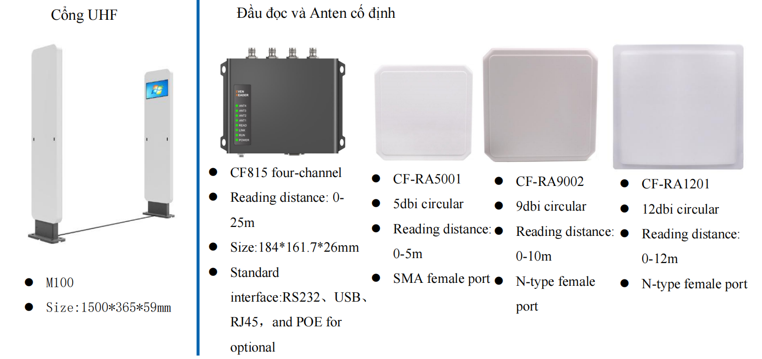 - Đầu đọc cố định UHF có thể giao tiếp với cổng mạng để tải lên và gửi dữ liệu về máy chủ qua mạng.