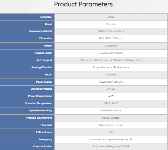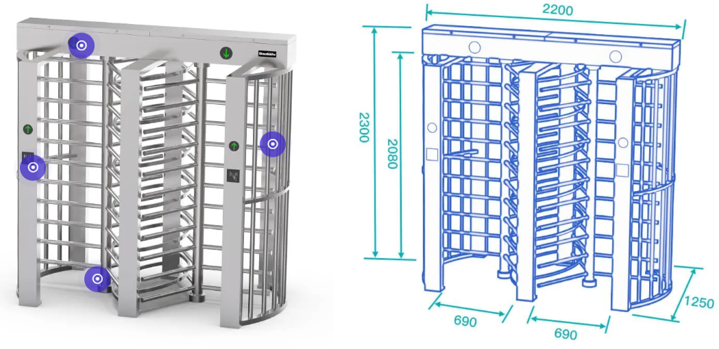 - Cổng xoay toàn chiều cao SV412 là giải pháp an ninh trọn gói cho các sự kiện yêu cầu bảo mật cao, ví dụ như doanh nghiệp công nghiệp, sân vận động, sân bóng đá.